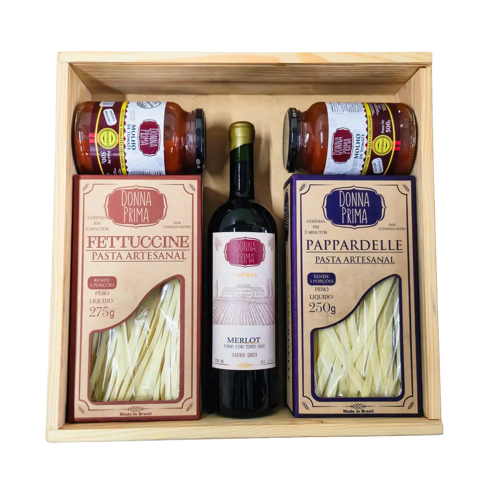 1 Pasta Artesanal tipo Fetuccinne, 5 mm largura, extra fino, feito com ingredientes de alta qualidade, prazo de validade 1 ano “sem conservantes” e com cozimento apenas em “2 minutos”