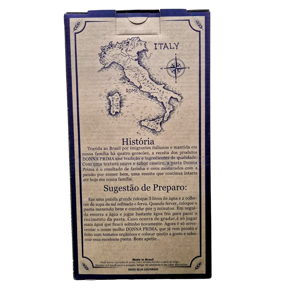 Ingredientes: Farinha de trigo enriquecida com ferro e ácido fólico e ovos. CONTÉM GLÚTÉN